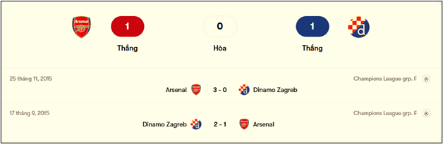 1. Thống kê phong độ, lịch sử đối đầu của Arsenal vs Dinamo Zagreb: